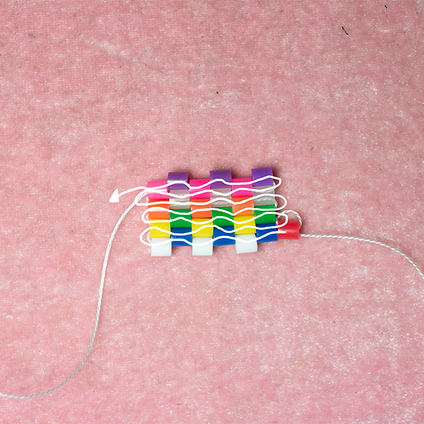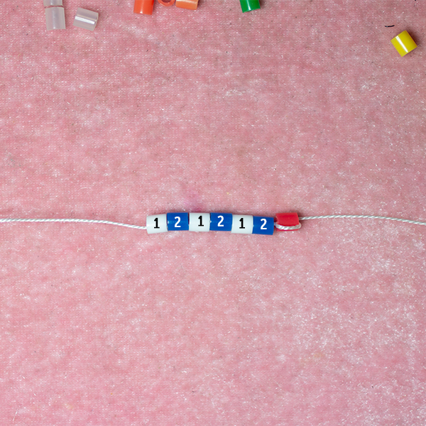 So in this example, you will go through the first blue bead on your string. See picture 04