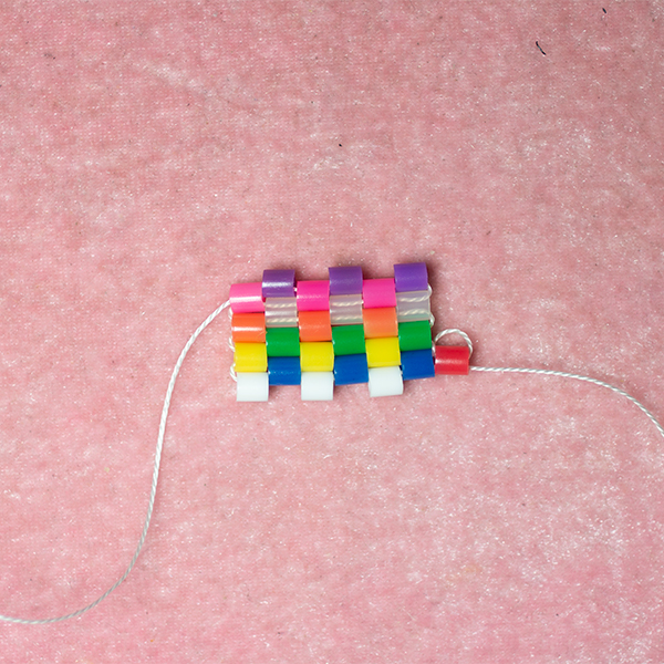 Here is what it looks like when you’ve added the fourth row (three green beads).