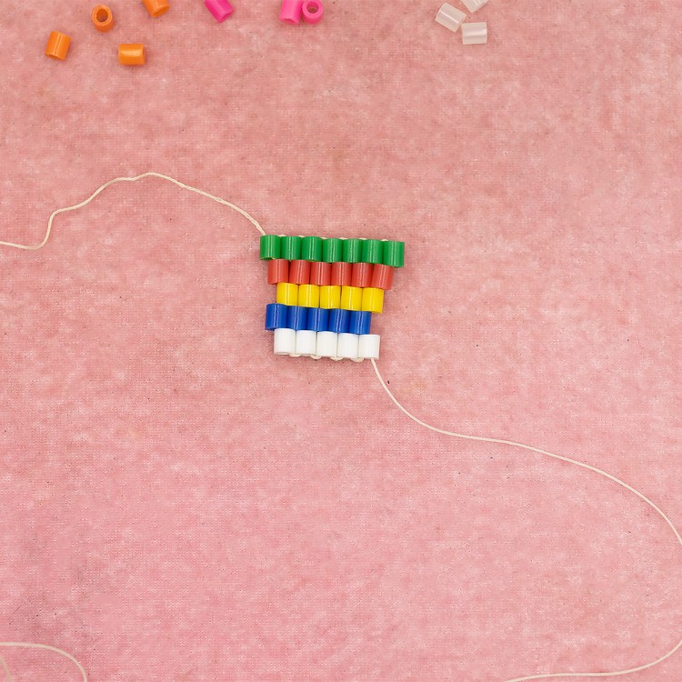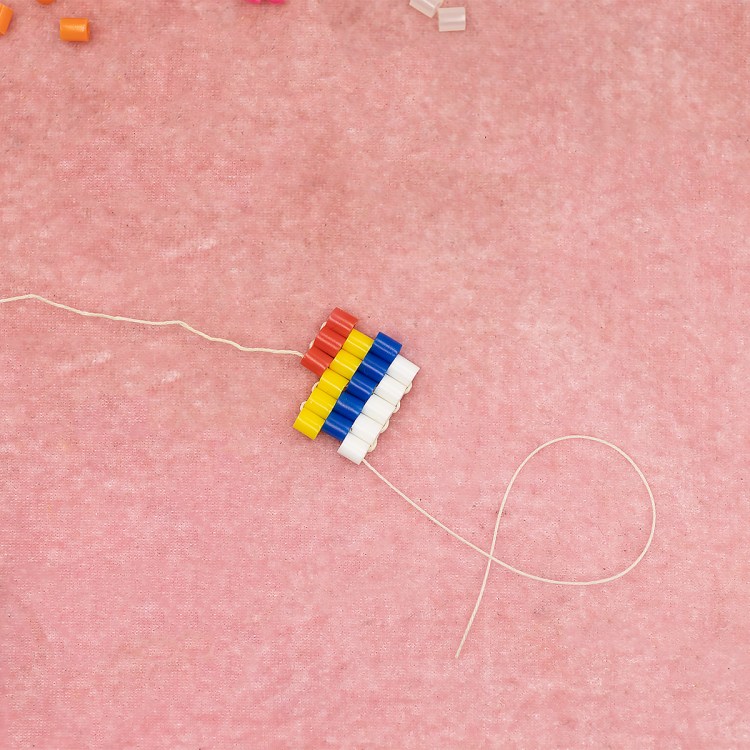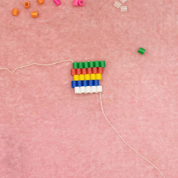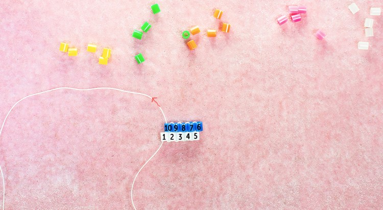 So, here we are with our row of five red beads. Now we want to increase by one bead.