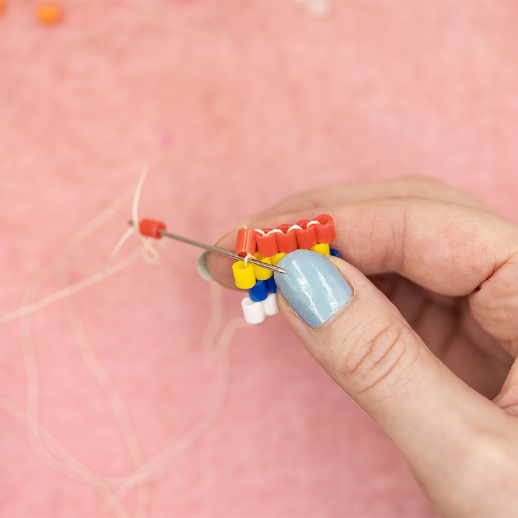 Once you have the first two beads snug, you can continue with the rest of the row.