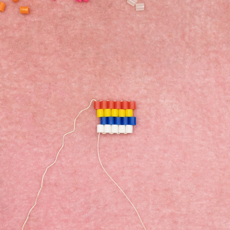Here is what the first 4 rows should look like, with the fourth row (red beads) having a one-bead increase.
