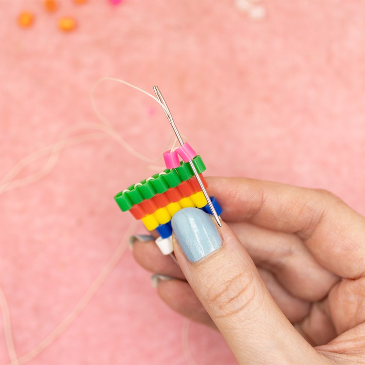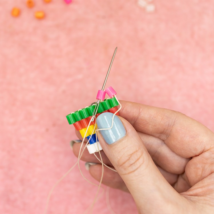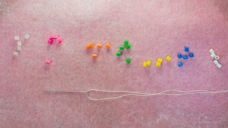 As always, I’ll be using these great melty beads (perler beads) so that you can see every step clearly. I’ll also be using a large needle and some heavy-duty thread. These are not only great for me to demonstrate different stitches to you, but they are great for people who are new to beading. So if you’re worried about using those tiny little beads, that’s okay, start with these and it will be smooth sailing.