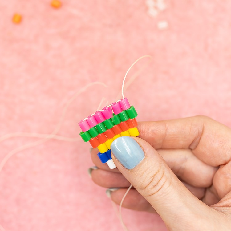 I’m going to do another row of 5 in “normal” brick stitch. Again, if you need a refresher on how to do this, check out the brick stitch tutorial here.
