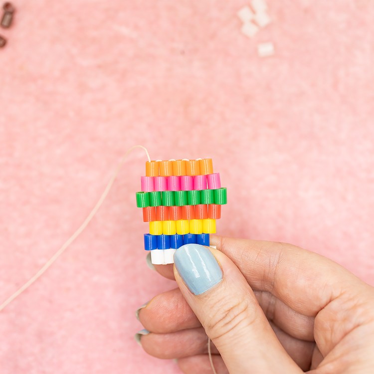 So that is how you increase and decrease when doing brick stitch. It might seem a little scary when you first start, but it’s not that bad once you get the hang of it.