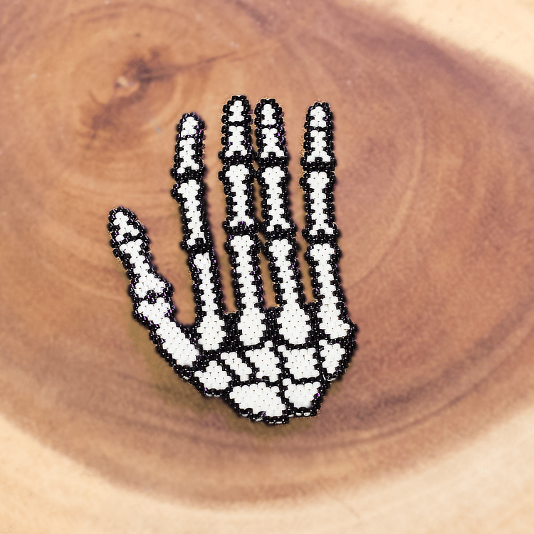 My newest beaded pattern: a skeleton hand. This one took me a little bit longer than I thought it would. But I think I’m pretty happy with this version.