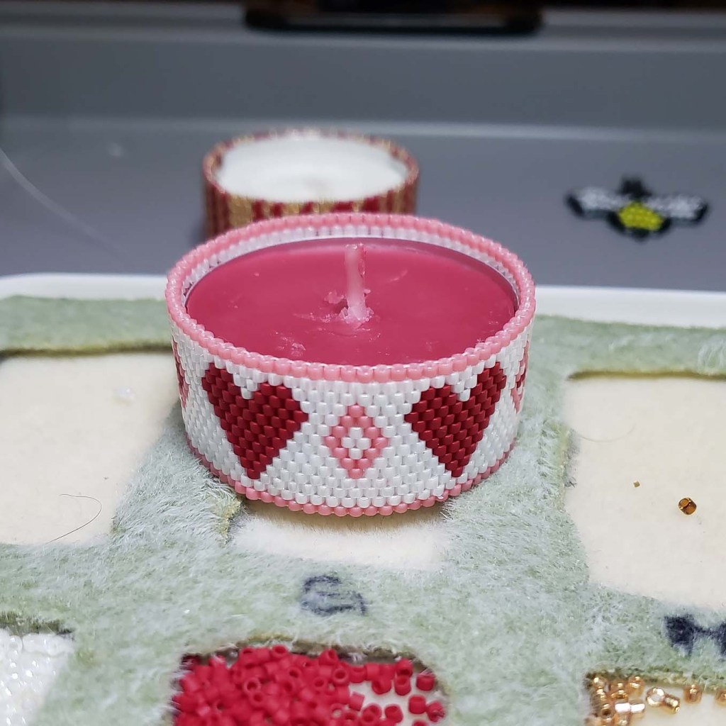 Next up is a simple beaded tea light candle cover. These are so sweet and would make the perfect gift for any of your loved ones.